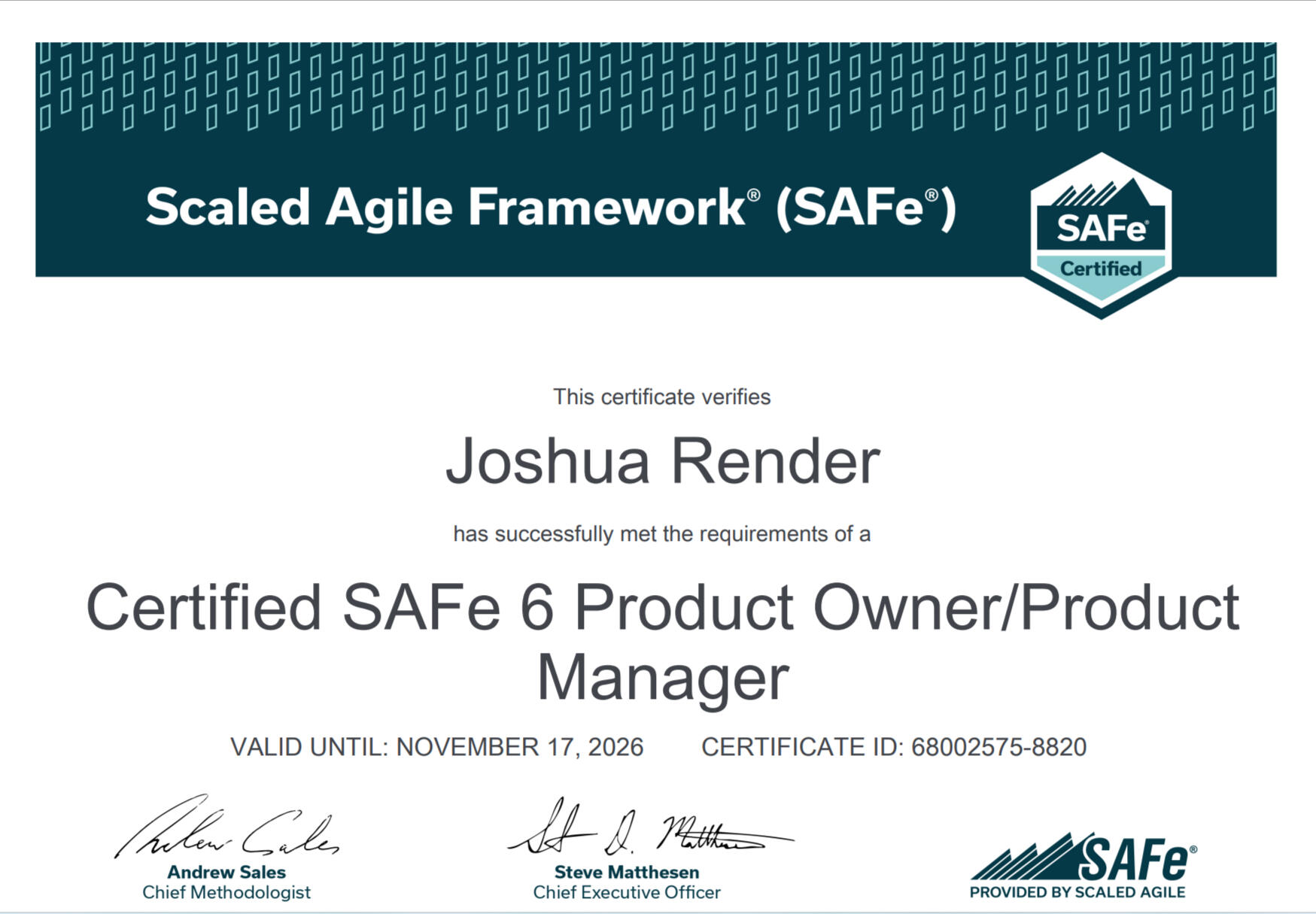 Certifications: PMP, PMI-ACP, ICP-ACC, CSM, A-CSM, CSPO, A-CSPO, SAFe POPM, PSM I & II, PSPO I, PAL I, SPS, CKC, Team Kanban Practitioner, ITIL v3, LSS Black Belt